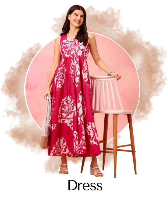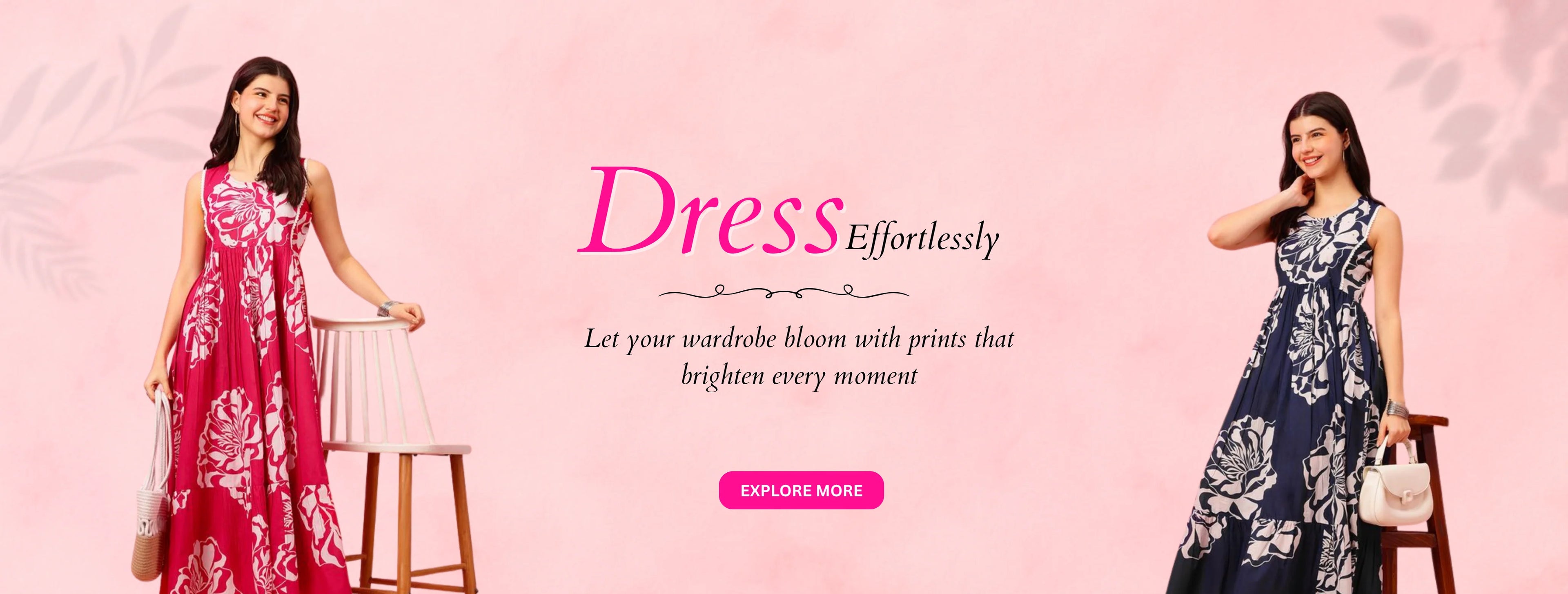 Women Beautiful Printed Full Flair Middi Gown With Pottli Buttons Gown